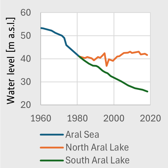 Changing water level of the northern and the southern part of the Aral Sea